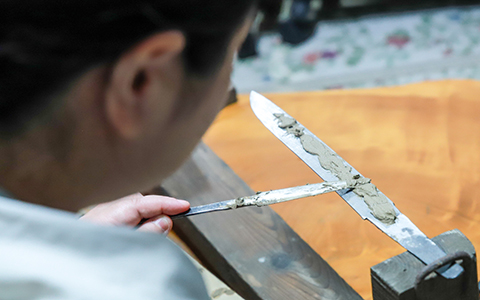 Some ladies tried clay designing, heating and quenching to tanto blades.