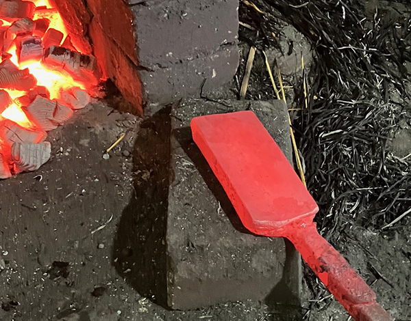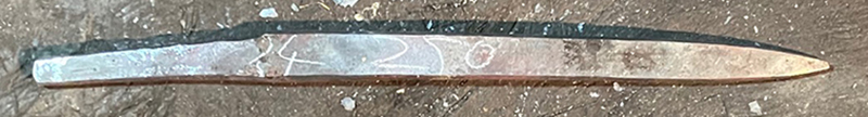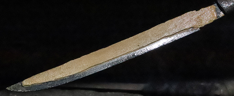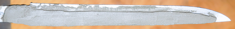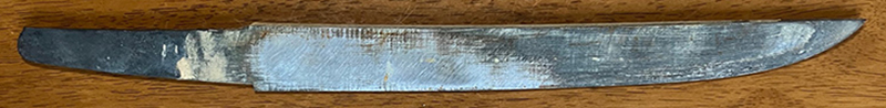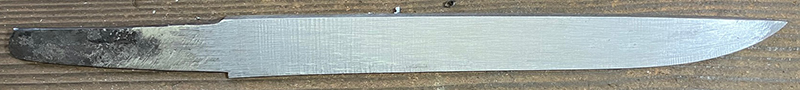 The steel log is cut into several tanto blades. One is this blade quenched