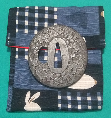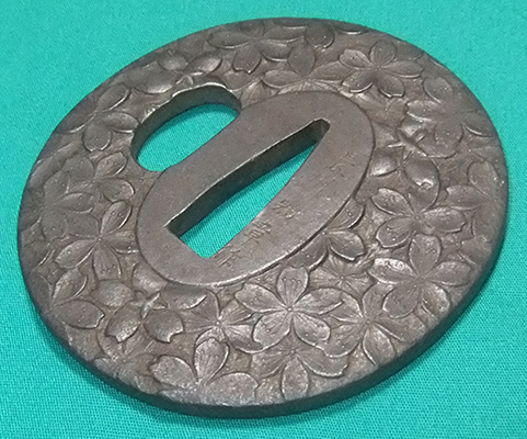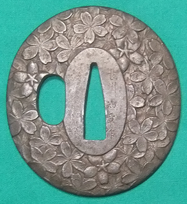 Tsuba 1 "Choshu Tomoaki" 6.8cm x 6.4cm x 4.2mm This is a beautiful tsuba with cherry blossoms design. Signature "Choshu Tomoaki saku", means "Nagato province, Tomoaki made". Tsuba bag 50,000.yen